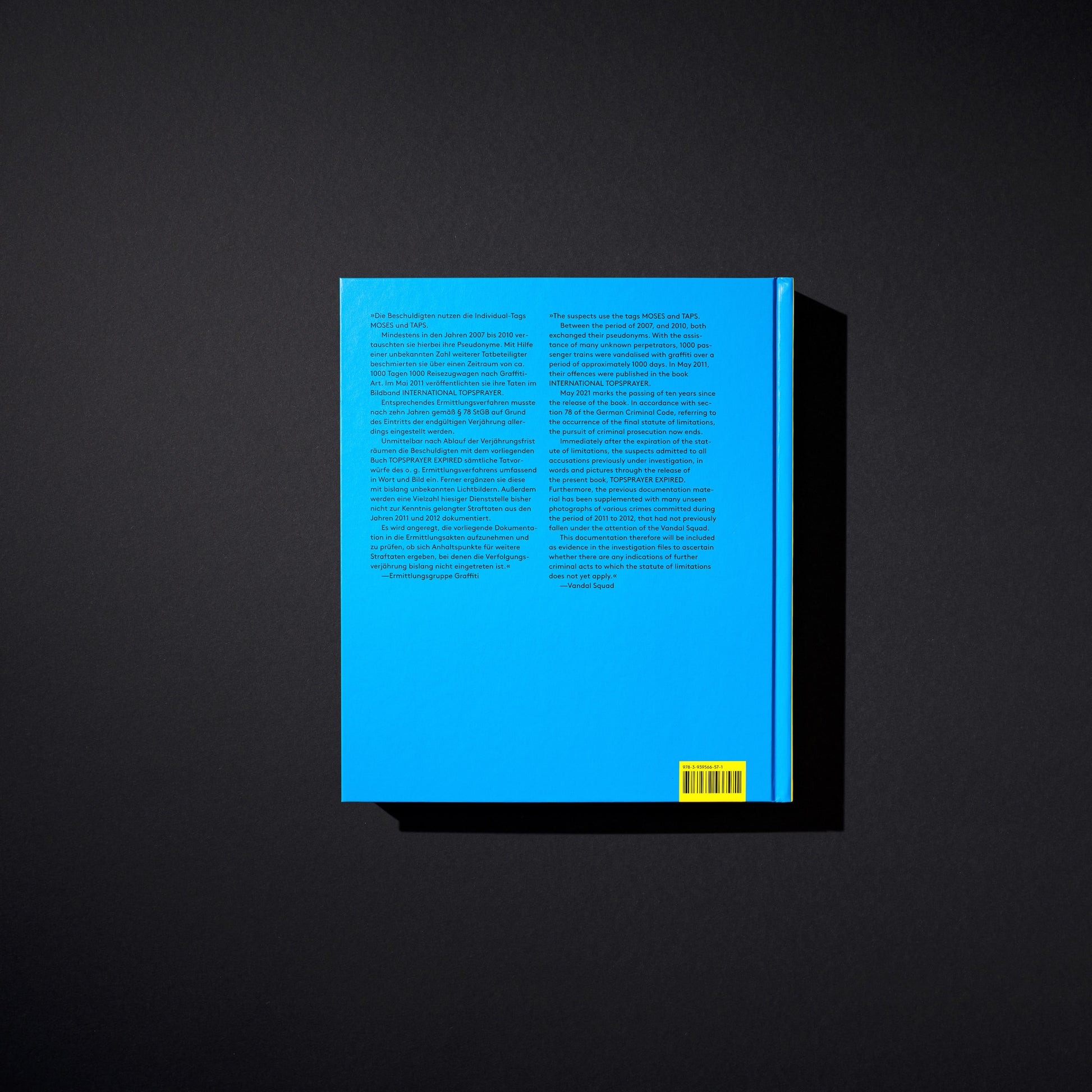 After the statute of limitations has expired, MOSES & TAPS now comprehensively admits all allegations in the case in words and pictures with the book TOPSPRAYER EXPIRED. The suspects also supplement the allegations with previously unknown photographs and descriptions of the crime. In addition, several hundred previously unreported graffiti crimes, especially from 2011 and 2012, are documented.