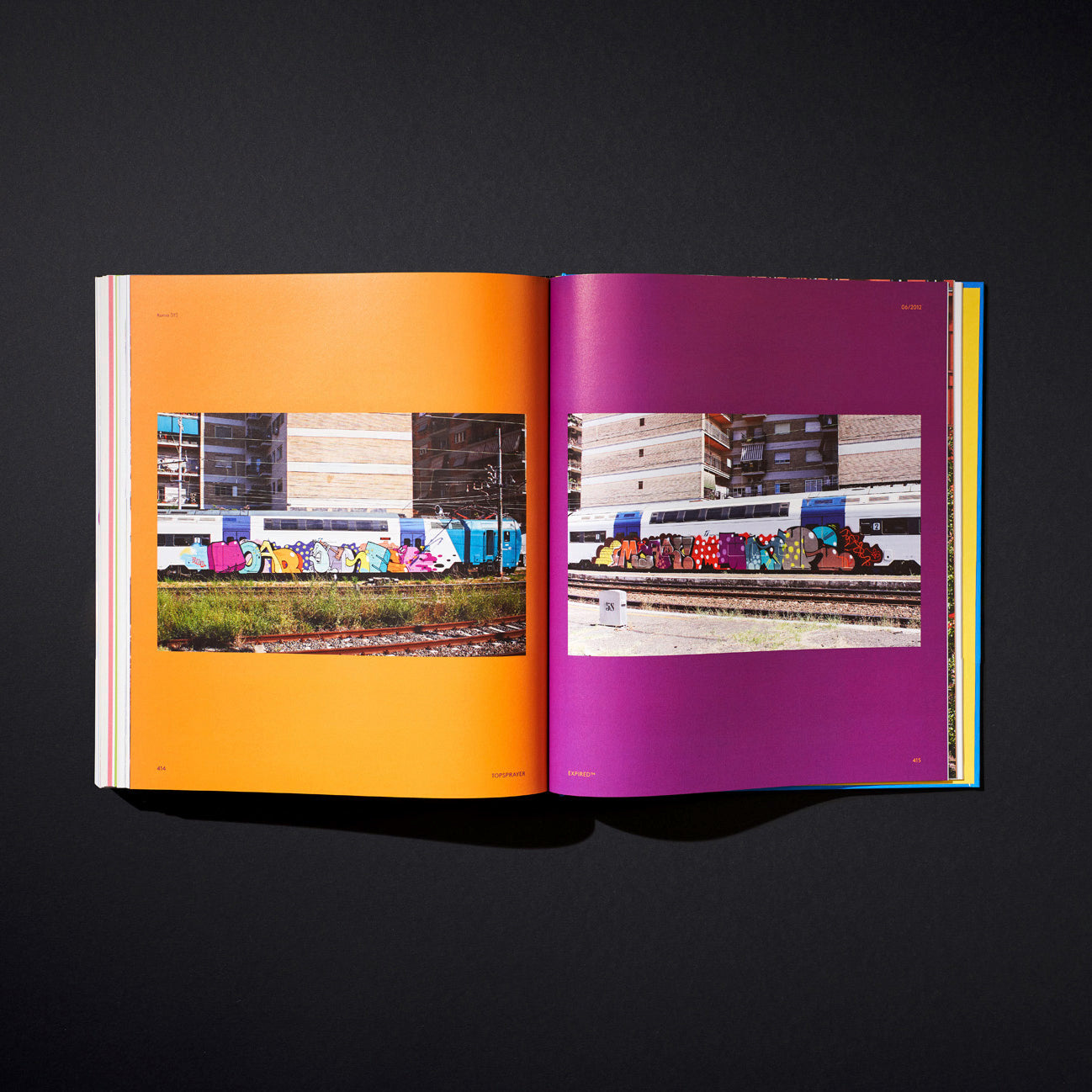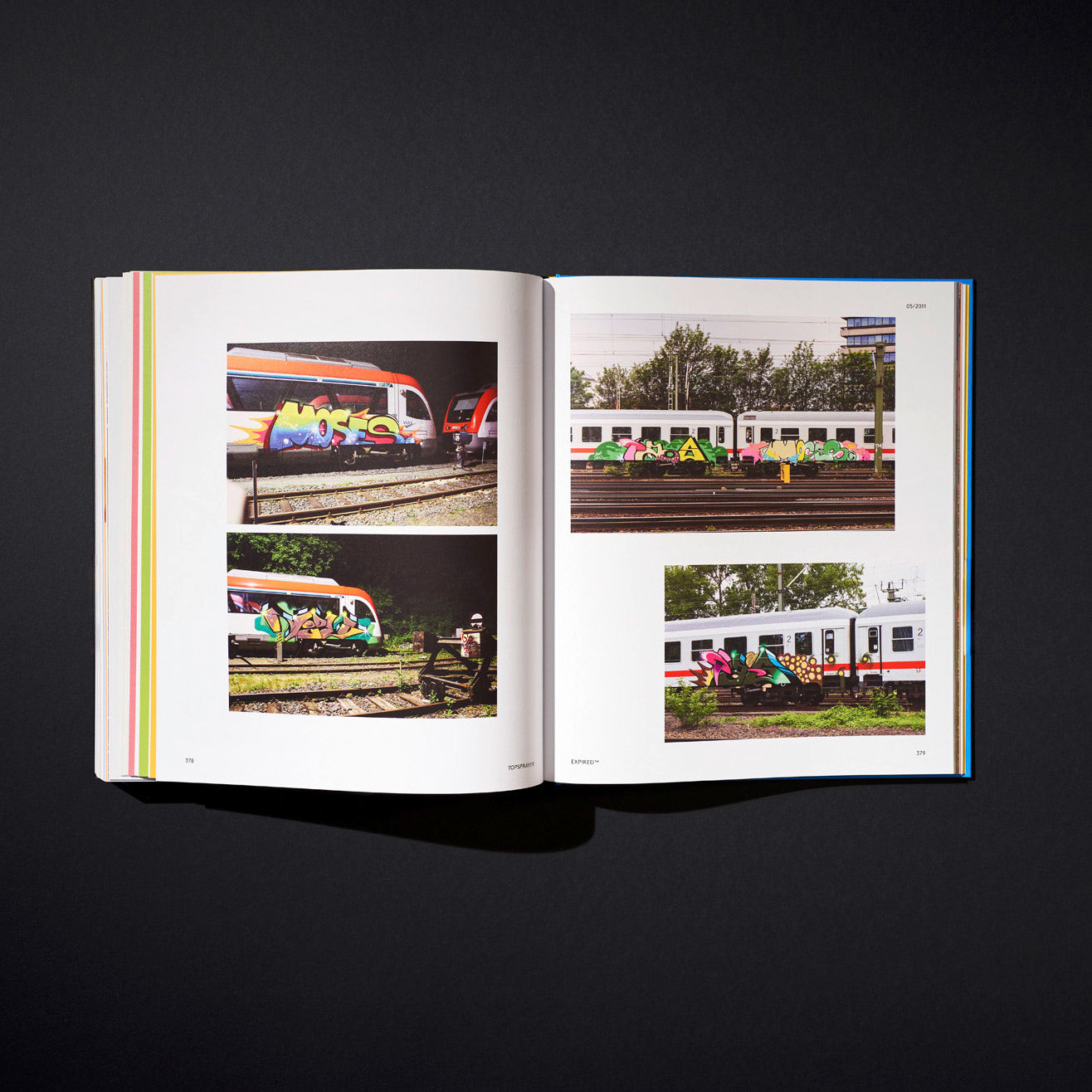 »In the years 2007 to 2010, the accused MOSES and TAPS swapped their pseudonyms. With the help of an unknown number of other people involved, they graffitied 1,000 passenger carriages over a period of 1,000 days. In May 2011 they published their exploits in the illustrated book INTERNATIONAL TOPSPRAYER.