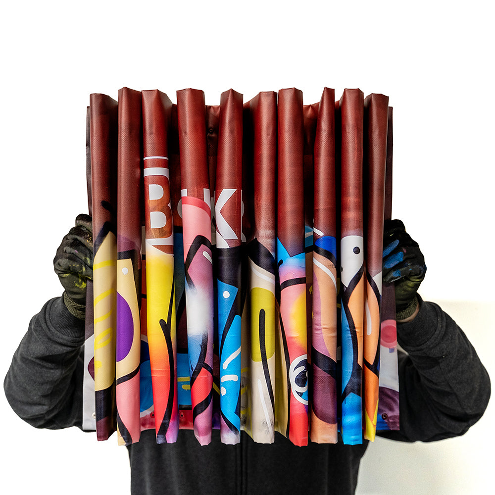 Digitaldruck auf PVC-beschichtetem Polyestergewebe, genietet auf Stahlrahmen