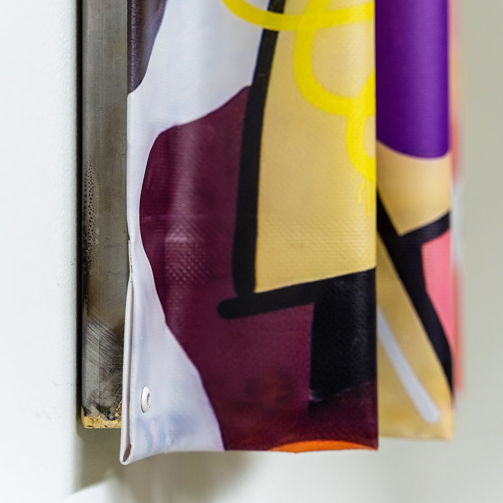 Digital print on PVC-coated polyester fabric, riveted to steel frame