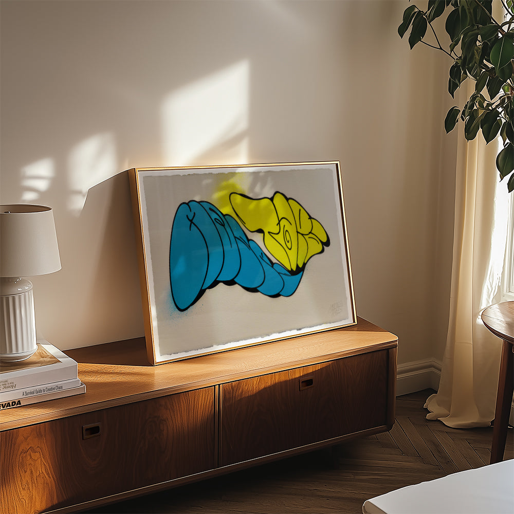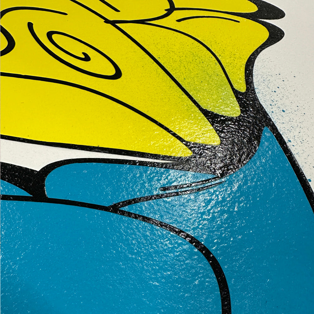 The work is shipped professionally packaged and unrolled as specially insured UPS art transport