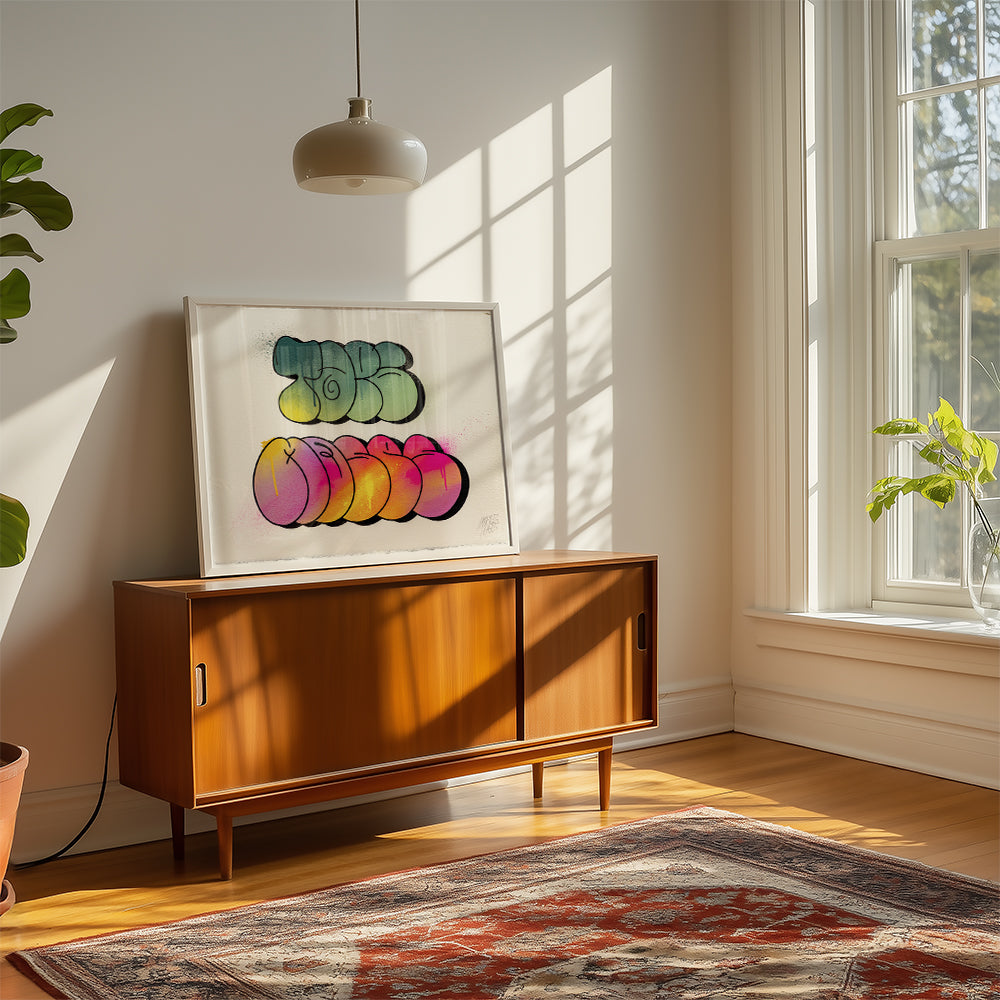 The work is shipped professionally packaged and unrolled as specially insured art transport.
