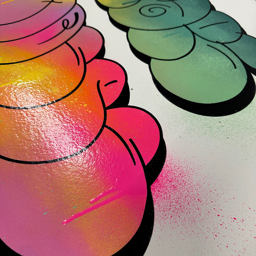 The throw-ups are sealed in three layers with Lascaux UV protection.